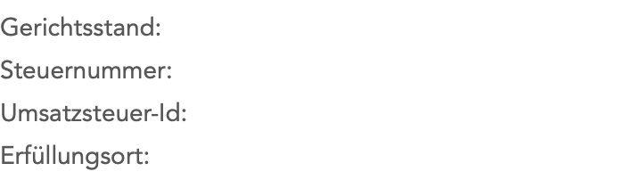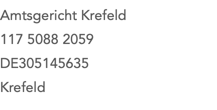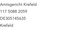 Gerichtsstand: Steuernummer: Umsatzsteuer-Id: Erfüllungsort: Amtsgericht Krefeld 117 5088 2059 DE305145635 Krefeld